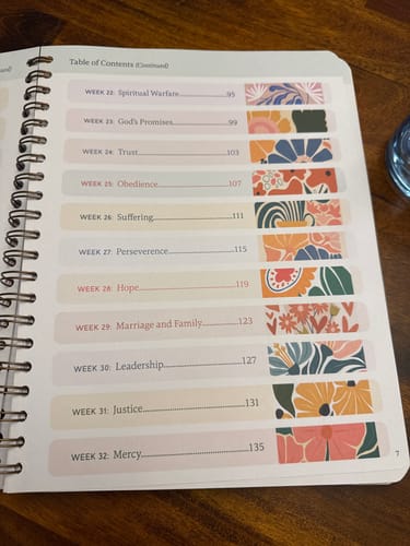 Recientemente compré el devocional "52 Semanas en la Biblia". Me encanta usar esta herramienta fenomenal en mi tiempo libre. El diseño, la posibilidad de tomar notas, pero sobre todo el contenido. He disfrutado profundizando en los temas, permitiendo que el Señor me ilumine con sus principios. ¡Absolutamente maravilloso! Ahora me gustaría coleccionar más. ☺️
